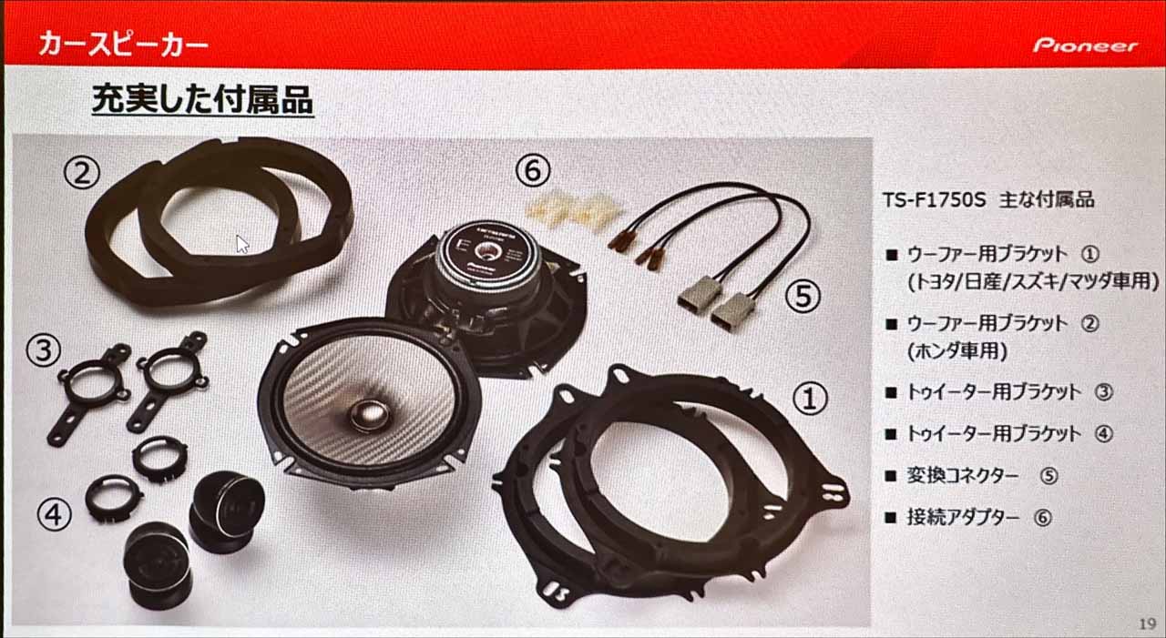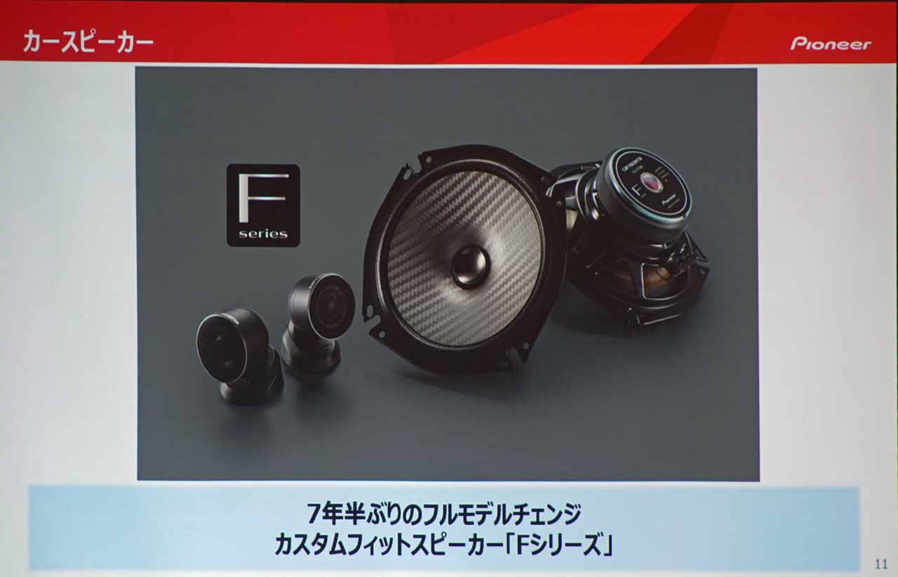 一番の注目は、カスタムフィットスピーカー Fシリーズのモデルチェンジでしょう。パイオニアのカスタムフィットシリーズは、もともとグレード上位から順に「V」シリーズ、「C」シリーズ、Fシリーズの3つをラインナップしていました。