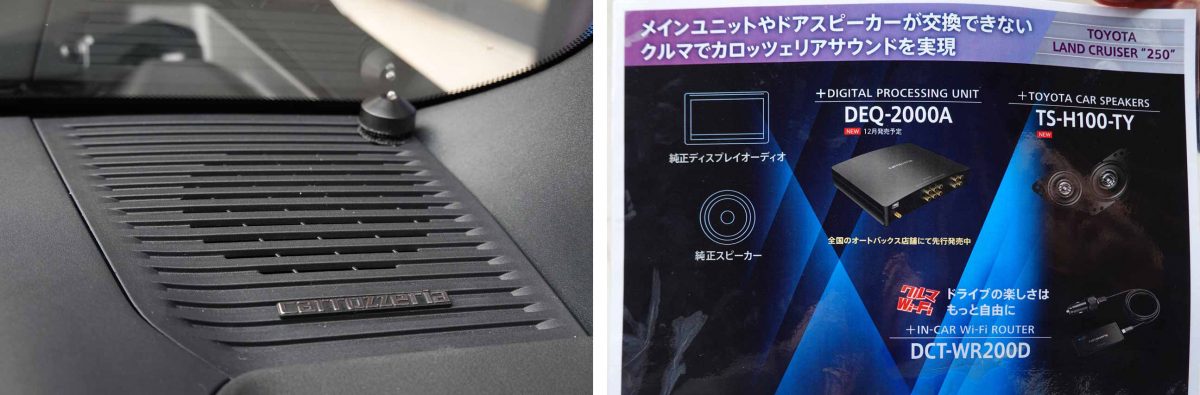 ランドクルーザー250は、TS-H100-TYとDEQ-2000Aを組み合わせつつもサブウーファーを含めないシステムとなっていました。現時点でDEQ-2000Aのプリセットがないため、サウンド調整はパイオニアの技術者が直にチューニングしたとのことです。