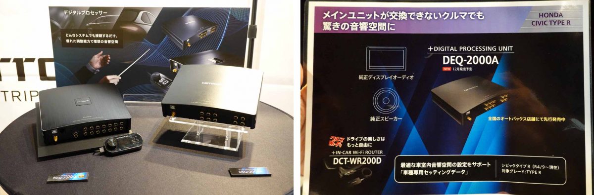 シビックタイプRの場合もオーディオをインフォテイメントシステムに組み込んだために、出力側での対応が基本となります。デモカーではスピーカーも純正をそのまま活用していました。そのうえで、DEQ-2000AにはシビックタイプR用にプリセットされた専用データが収録済みで、純正スピーカーの能力をフルに引き出すことを可能としたのです。まさにDEQ-2000Aは“魔法の小箱”というわけですね。