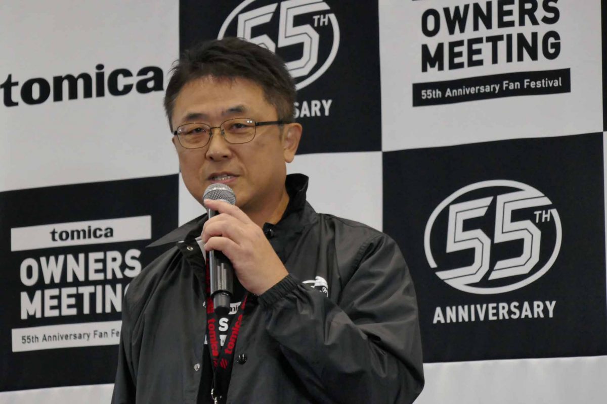 取材したのは初日の12月5日。この日はオープニングセレモニーが開催され、開会の挨拶に立ったタカラトミー・竹内俊介氏(上席執行役員 ブランドビジネス本部長)は、「本当は50周年で開催したかったがコロナ禍で断念した」と悔しかった思い出を披露しつつも、55周年を迎えられたことを「ファンのみなさんへの感謝と、これからも一緒に走り続けたいという思いを込めたイベントです」と開会宣言。イベントはスタートしました。
