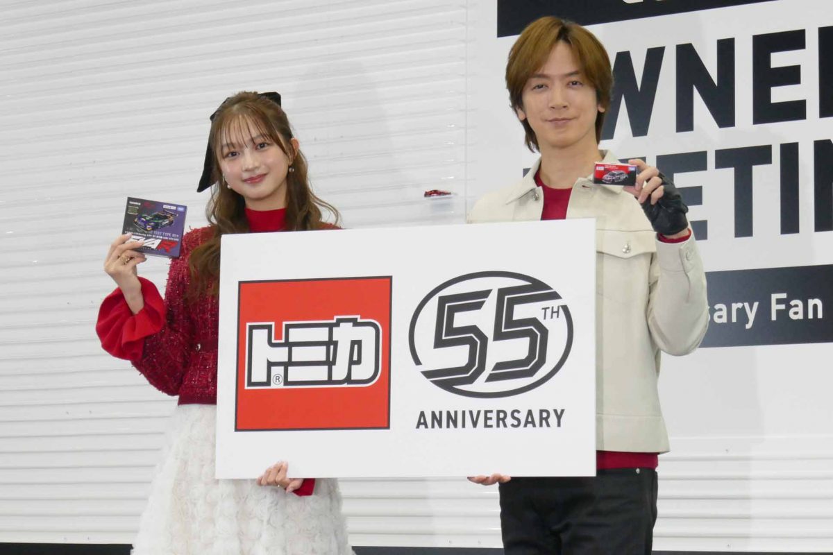 トミカのブランドメッセージ「本物は、ときめく。」は、ミニカーの枠を超えて、本物のクルマが放つ“ときめき”をトミカファンに届けていくという熱いメッセージが込められています。タカラトミーの竹内氏は、「コロナ禍にあった2021年以降も順調に売上を伸ばし続けられている。これは多くのトミカファンが支えてくれているおかげ」と感謝の意を示し、DAIGOさんも55周年を迎えたトミカを指して「トミカは100周年まで続く」を意味する「T.H.T」で表現。会場からは大きな拍手が送られていました。