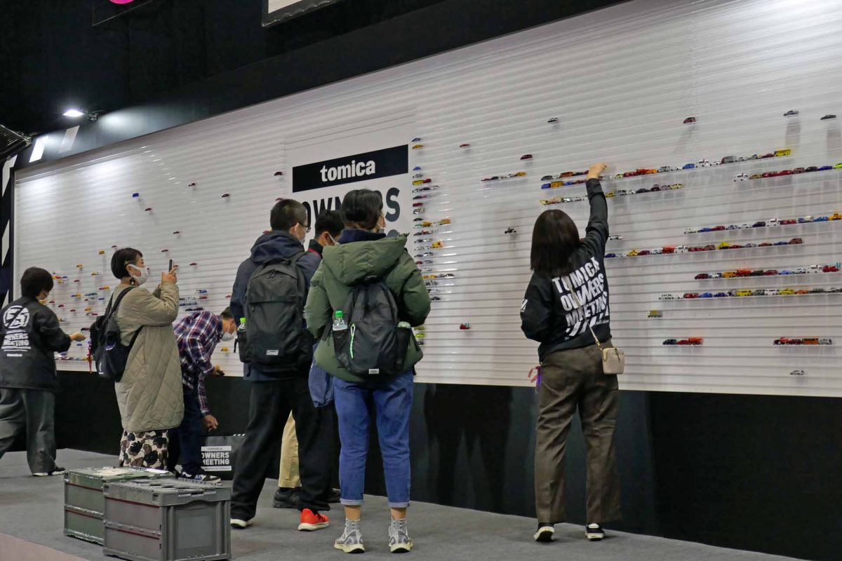 その記念すべき1台目と2台目をDAIGOさんと佐藤さんが置くと、さっそくこの企画はスタート。初日の後半にはウォール内にトミカで棚がほとんど埋まる人気ぶりとなりました。