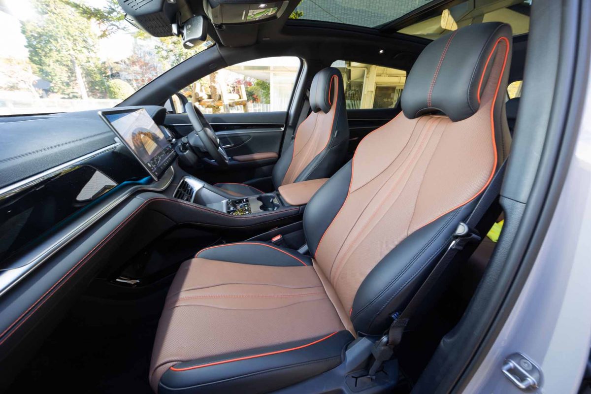 インテリアはブラック&ブラウンの2トーンカラーで、上級車らしい質感の高さが伝わってきます。シートは大きめでたっぷりとしており、ホールド性も上々。クッションの固さもほどよく、今回の御殿場~箱根を走り抜けた長めのルートでも疲れを感じることはありませんでした。