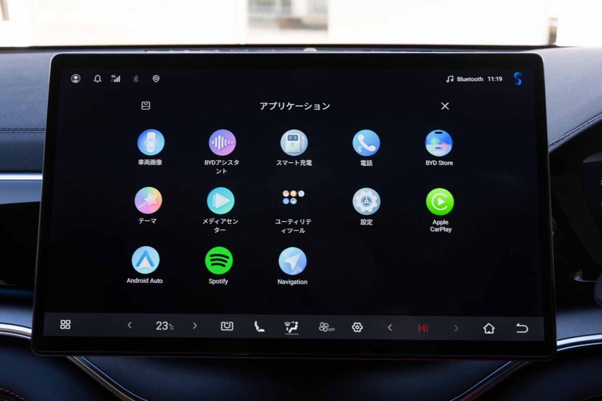 センターにあるディスプレイは、15.6インチとかなり大きいのですが、ほかのBYD車と違ってタテ方向に回転はしません。これまでディスプレイの回転がひとつのウリとなっていた感がありますが、個人的にはそのメリットをあまり感じることはありませんでした。これだけ大画面であれば、回転する必要はほぼないのではと思っていたからです。