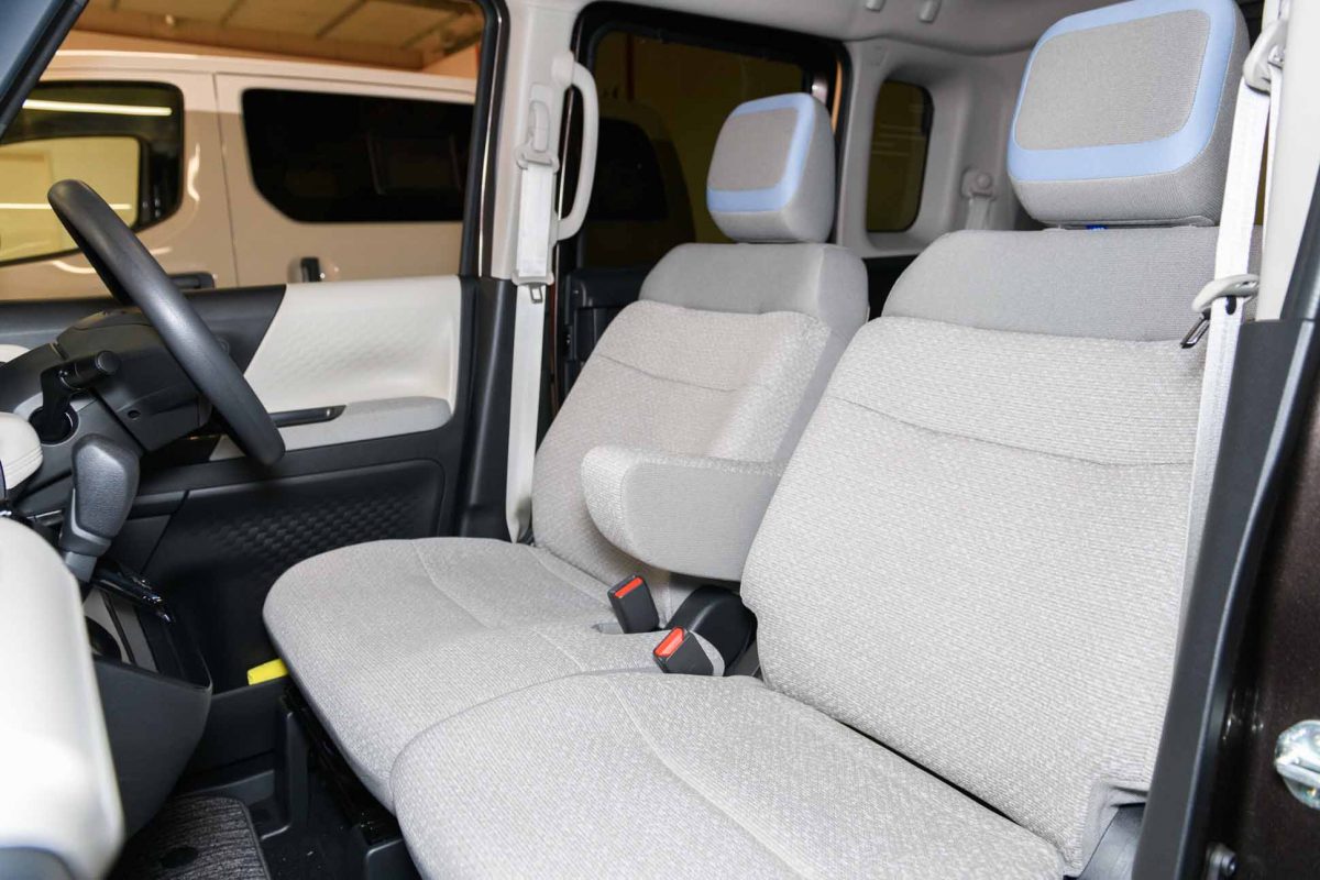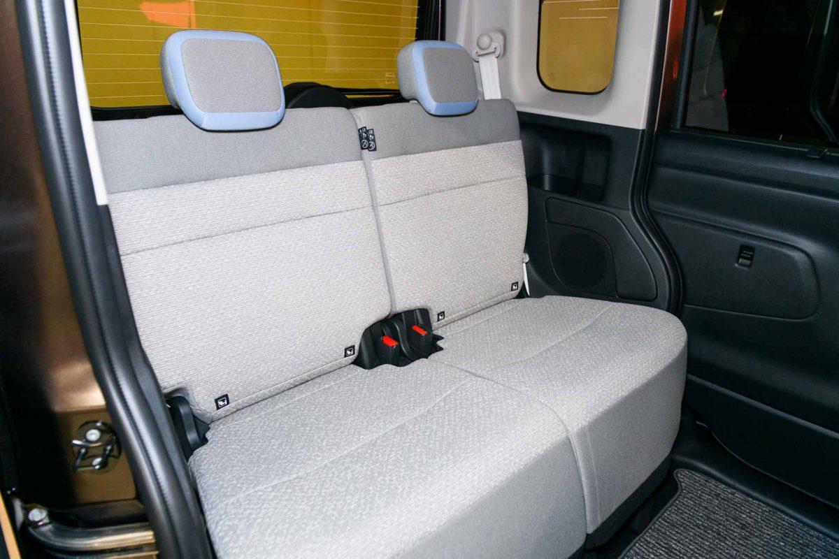 シートは日産独自の疲れにくいゼログラビティ思想に基づくもので、身体をしっかりとホールドしてくれるため、運転中も快適な乗り心地を味わうことができます。後席は座面長が延長されてサイズもたっぷりとしており、なかでもヘッドレストを上に出さなくても座れるのは軽自動車とは思えない余裕すら感じさせます。