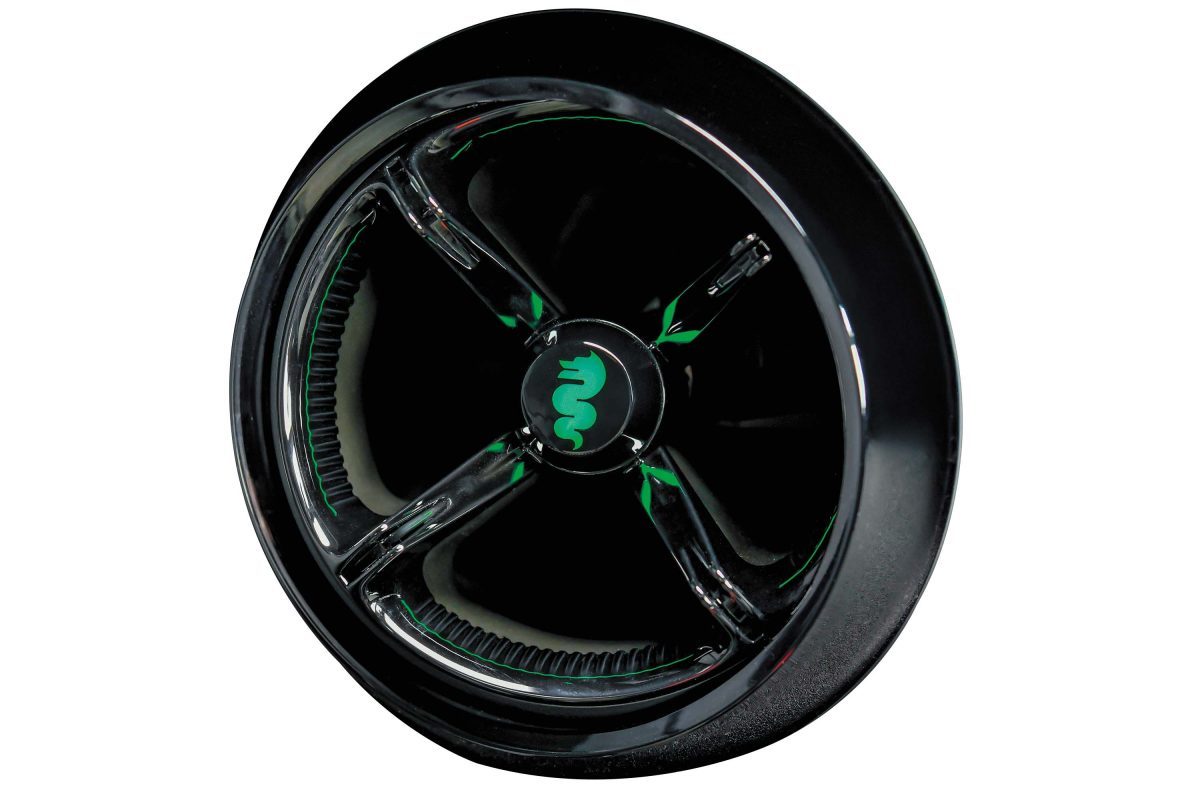 アルファ ロメオのハイパフォーマンスモデルに冠されるシンボル「クアドリフォリオ」は四つ葉のマークですが、吹き出し口はシルエットが四つ葉形状です。中央にはアルファ ロメオのエンブレム内にいるヘビがあしらわれています。
