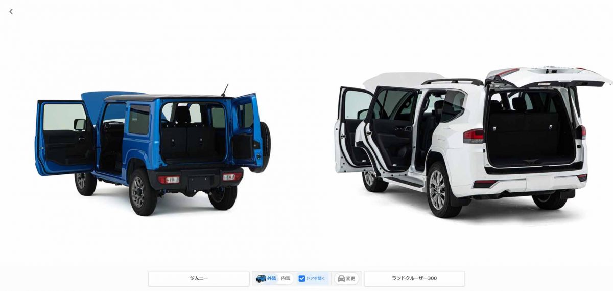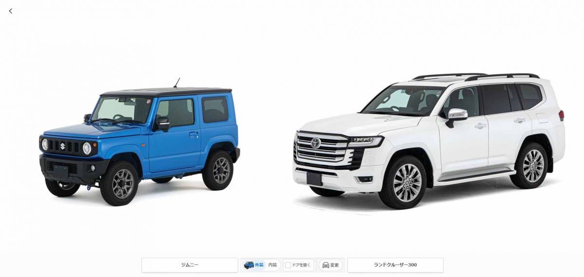 そんな中で見逃せないと思ったのは、車種によって異なるサイズまでも忠実にスケール合わせをしていることです。担当者はこれについて、「たとえば『ランドクルーザー』と『ジムニー』を並べた際、同じ大きさに見えては変ですよね。その実現のために実際の大小比がわかるよう、撮影マニュアルをゼロから構築したのです。背景もクルマ中心にわかりやすくするため、映り込みなどのノイズを排除して対応しています」と、ページ掲載の際にも徹底してこだわったことを明かしてくれました。