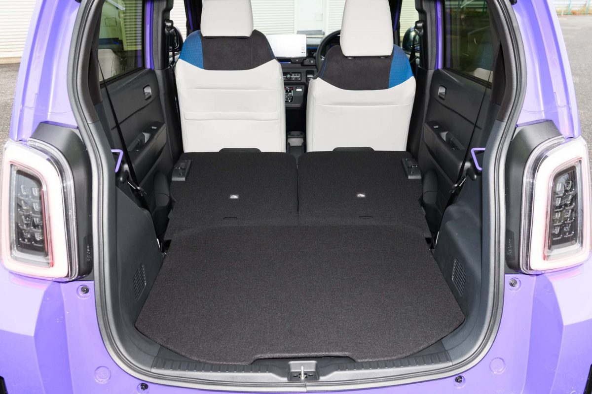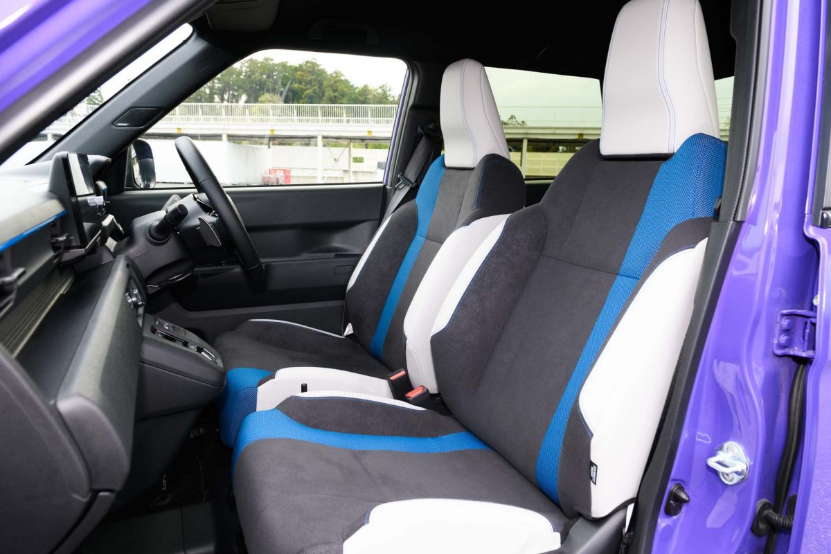 内外装のデザインからもつい思わず気持ちが昂ぶってきます。設定されたボディカラーは、試乗した新色「ブーストバイオレット・パール」を核として全5色。大型リアウイングやディフューザー、15インチの専用大径ホイールが、ただのコミューターではない「スポーツカー」としてのオーラを放っており、そこからは所有欲がおのずと高まってきます。