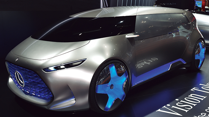 メルセデスが発表した未来のシティカーのコンセプトモデル。自動運転時代に即した室内スペースのあり方を提案し、クルマは将来、「動くリビングスペース」として進化することを示唆しています。