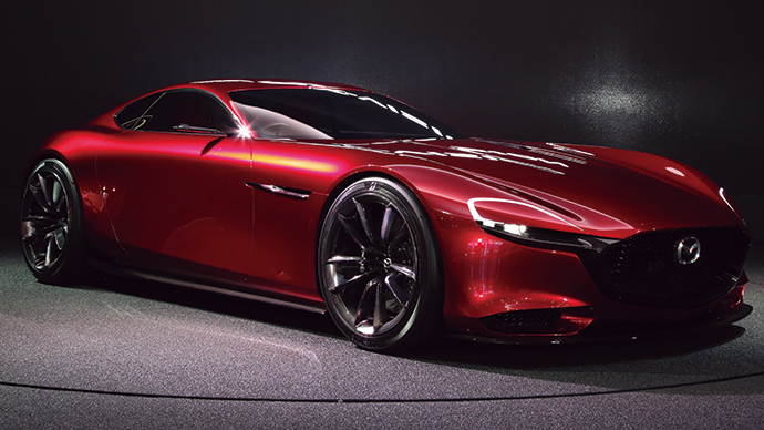 マツダが考える最も美しいFRスポーツを追求した一台。動力源には、開発を続けていた次世代ロータリーエンジン「SKYACTIV-R」を搭載し、圧倒的に低いボンネットと全高を可能にしました。