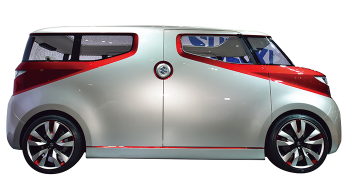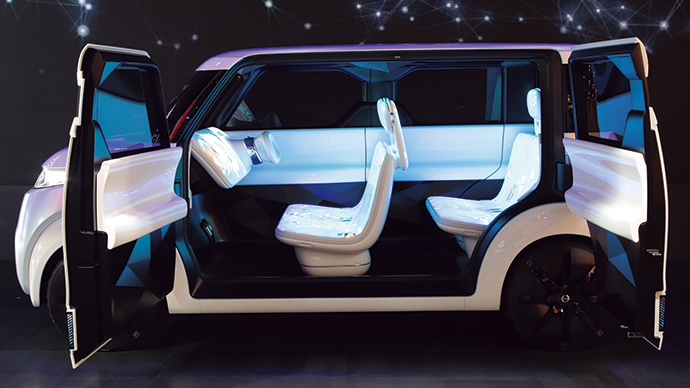 どこでも連れ出せるプライベートラウンジをコンセプトにした一台。3列シートを「コ」の字型にできるなど、くつろぎの空間を提案しました。