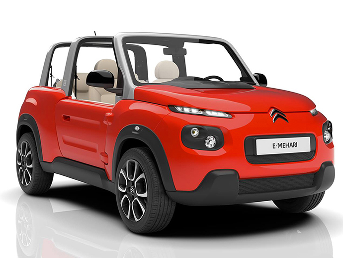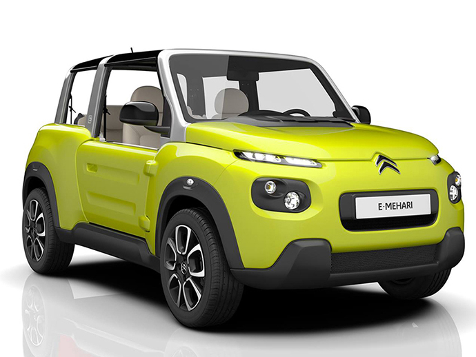 この「E-メアリ」は68年から88年まで生産されたシトロエンの名車「メアリ」を電気自動車として復活させたクルマで、かつての“オフロードカーでありながら都会的”というイメージをそのままに、現代風なアレンジが加えられた「キャッチー」な一台となっています。