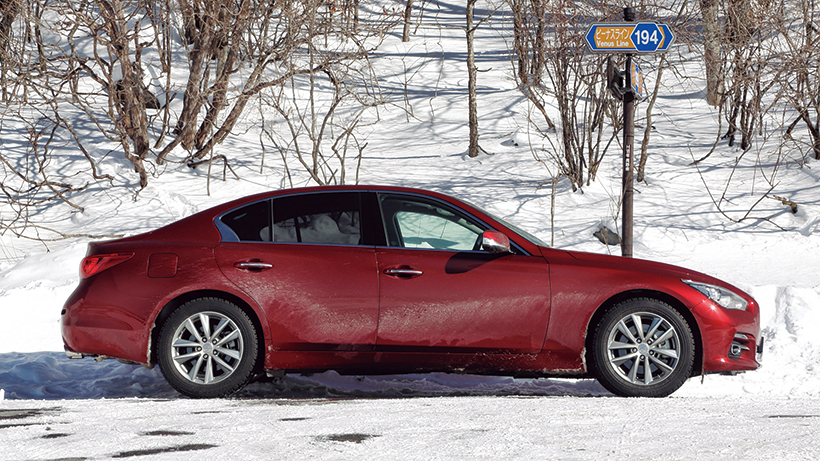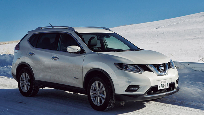 今回、全5台の日産車に試乗したが、特に感動したのは、エクストレイル ハイブリッド(上写真)とフェアレディZ。前者は、アクティブライドコントロールの実用度の高さが目からウロコだった。雪上はゴツゴツした振動が不快だが、同機能は車体が上下する動きを予測し、車体を制御。オンとオフでは天と地のような振動差があった。雪国のロングドライブでの疲労度が段違いに少ないはずだ。