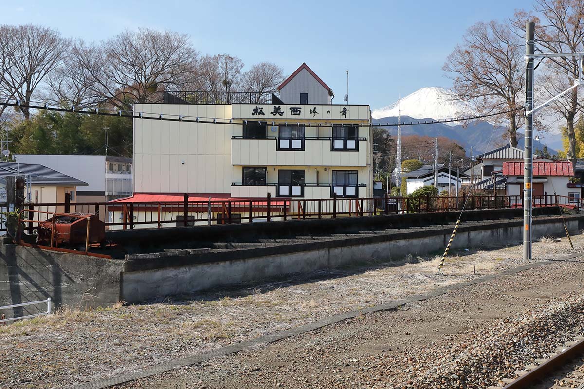 坂に強い電車での運行となり、スイッチバック施設は不要となった。そのために、線路は取り外されているが、スイッチバック施設は堤となって、残っている。とくに富士岡駅はスイッチバック施設が展望台としても整備されているので、ぜひ訪れていただきたい。非力な蒸気機関車が主力だった時代の列車運行の苦闘ぶりが思い浮かぶような遺構だ。