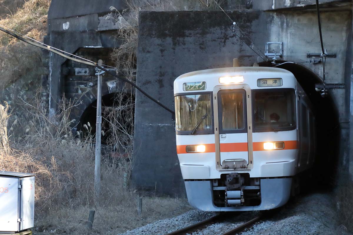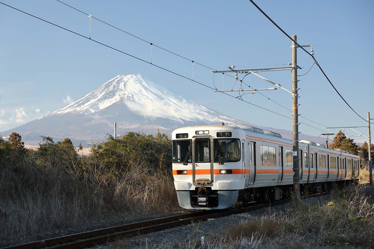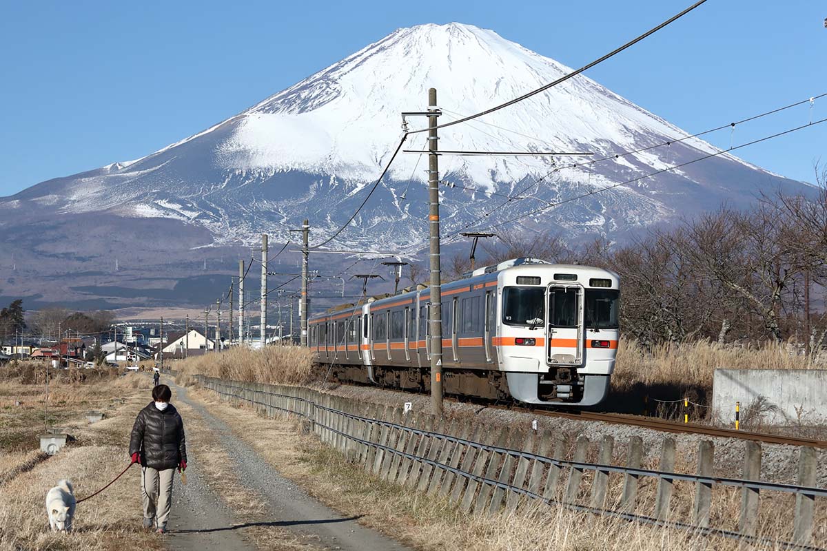 小田急から乗り入れる特急「ふじさん」は御殿場駅どまり。また普通列車も御殿場駅どまりが多い。路線を通して走る列車は少なめながら、御殿場から先へ行く列車も多く運転されているので心配は無用だ。御殿場線を走るJR東海の車両は313系電車のみだが、乗降口の横に開け閉めボタンが付いていて、寒い日や暑い日、駅に停車する時に扉を閉めることが可能なので便利だ。