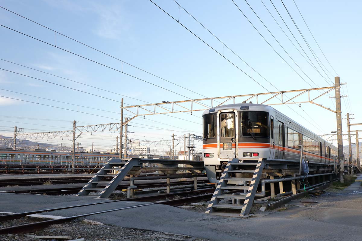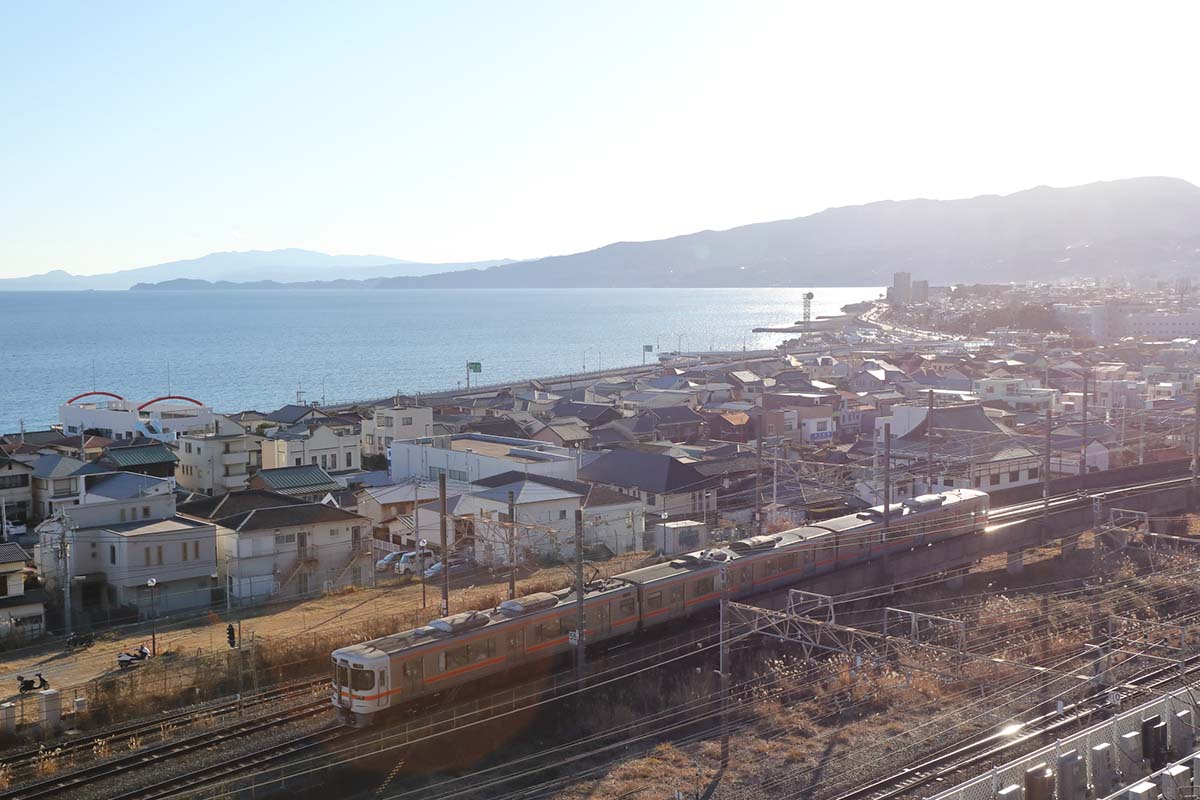 さて御殿場線の旅も最終盤。終点の沼津駅が近づいてきた。駅に入る前に左手にJR東海の車両が多く停められた沼津運転区が見えてくる。かつて沼津機関区だったところだ。