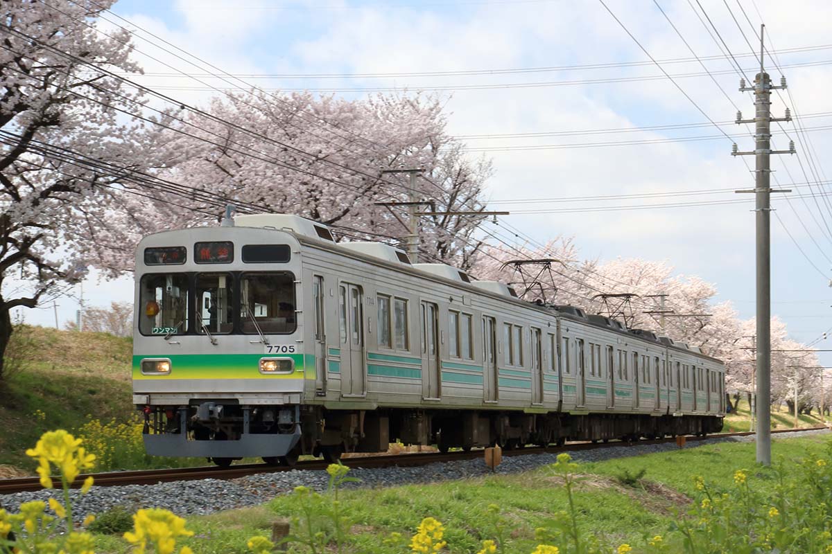 沿線の菜の花が名物のいすみ鉄道だが、桜も多くの場所で撮影することができる。特に新田野駅(にったのえき)〜上総東駅間では手前の堤に菜の花、背景に桜といった構図で撮影が可能。ほか総元駅(ふさもとえき)付近の桜も知られている。なお房総半島は温暖の地として知られているが、意外に内陸部の桜は開花が遅め。筆者も3月末に出かけてまだ早かったという経験があった。注意したい。