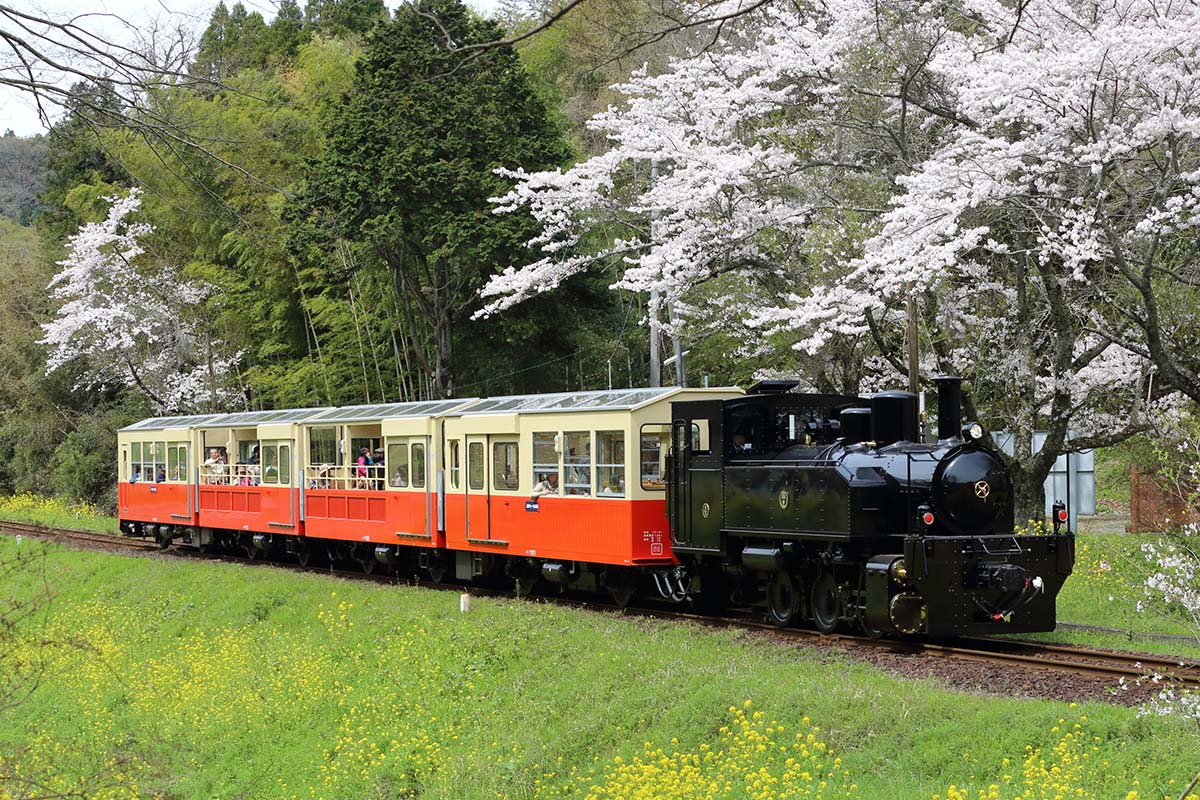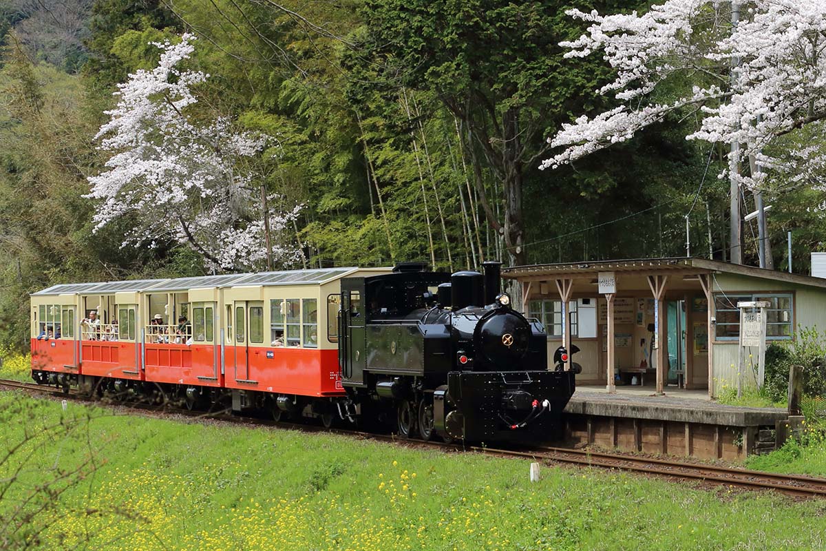 渡良瀬川沿いを走るわたらせ渓谷鐵道。沿線には花の名所も多い。特に人気があるのは神戸駅(ごうどえき)。桜に加えてよりピンクの色が鮮やかなハナモモが一緒に花開く。大間々駅〜上神梅駅(かみかんばい)間などの桜並木も良く知られている。開花時期は4月上旬。4月6日(土)〜7日(日)は神戸駅で「花桃まつり」が開かれる。臨時列車も運行予定だ。