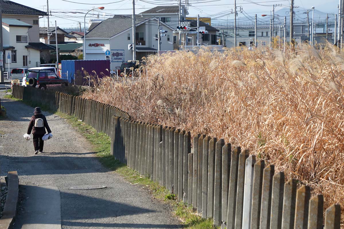 鳥居が立つ大門踏切のすぐ近くに気になる小道がある。その小道の横の空き地はまるで相模線から分かれ、下ってカーブしていていくような線路の跡に見える。道と空き地をレトロな形をしたコンクリートの杭が隔てている。