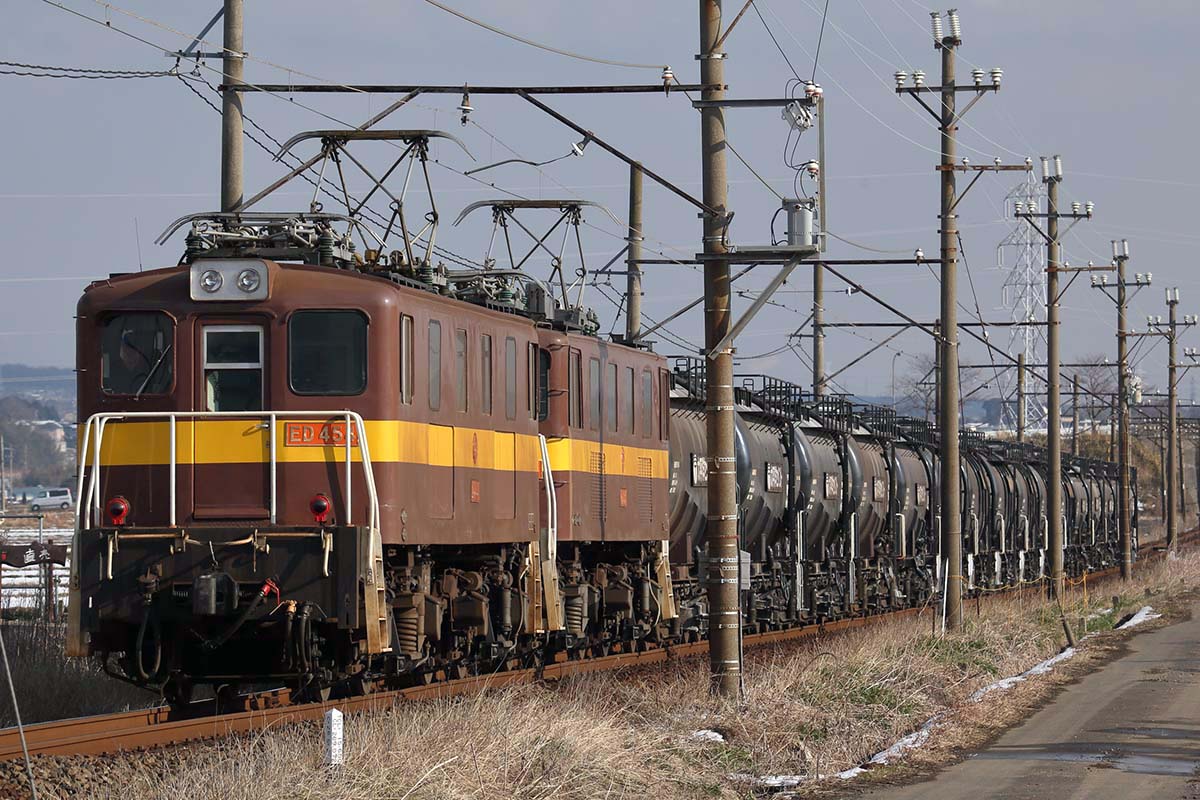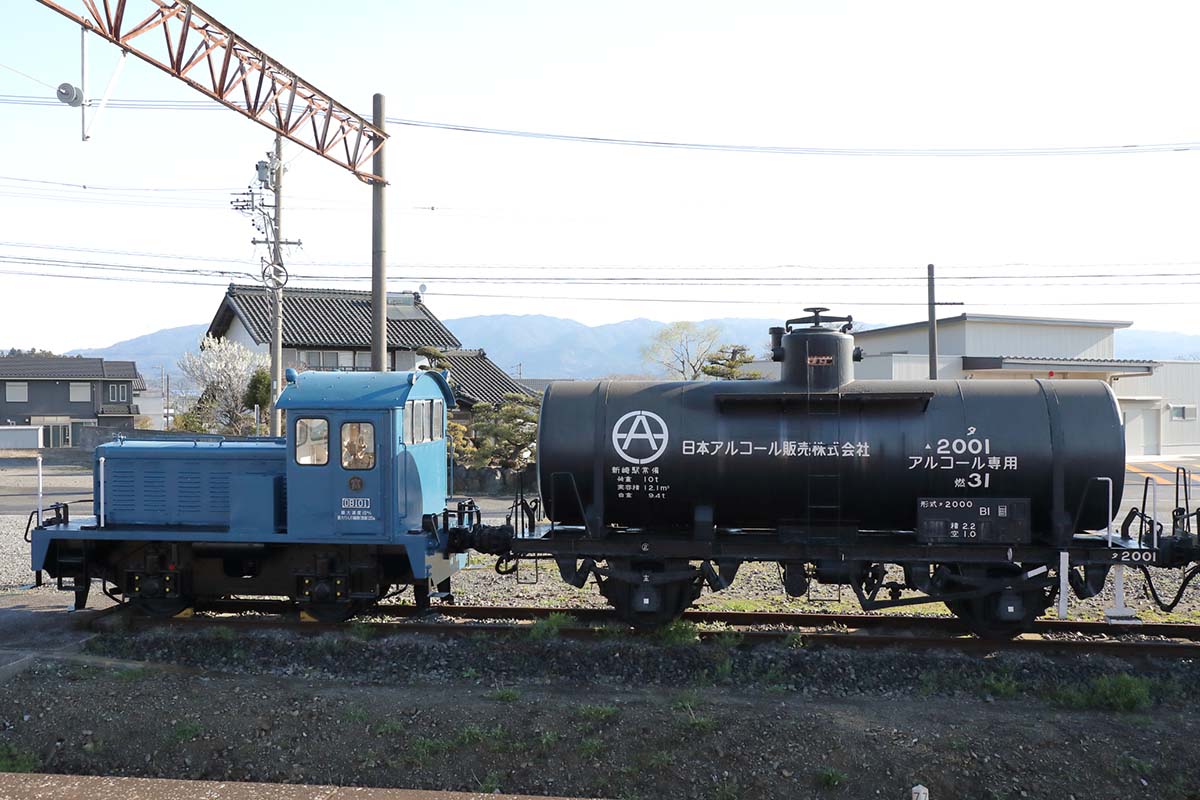 黒いタンク列車とは異なる白い貨車を牽く列車にも出会うことがある。この貨車は三岐線を含め東海エリアでしか見ることができない貴重な車両だ。