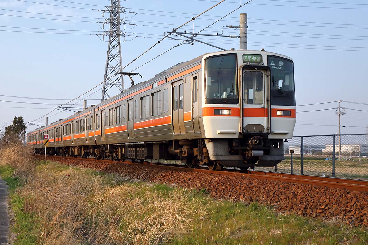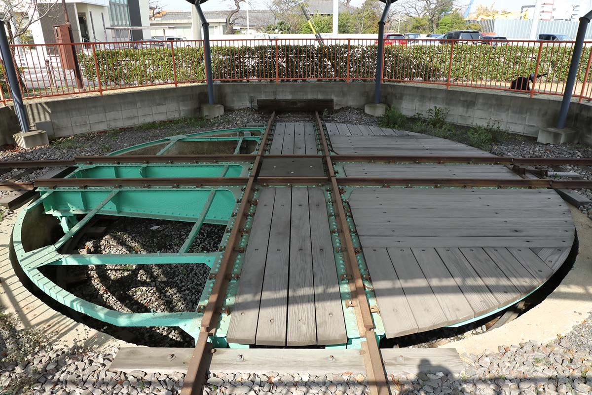 まずは特殊な形をした貨車を使った貨物列車から。こちらは東浦駅まで走る。東浦駅からは碧南線と呼ばれる衣浦臨海鉄道の路線へ入る。そして衣浦港を鉄橋でわたり対岸の碧南市まで貨物列車が走る。