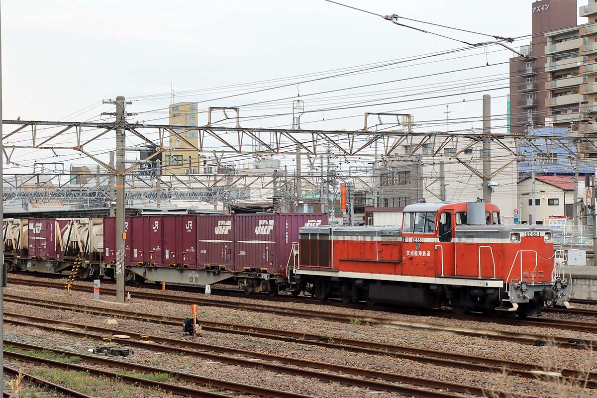 こちらのコンテナ列車は東成岩駅から衣浦臨海鉄道半田線へ列車が乗り入れる。