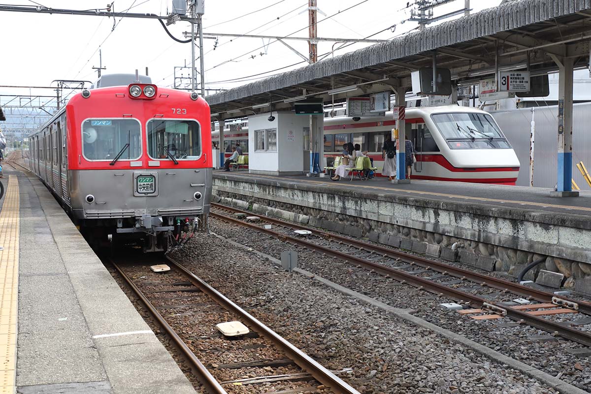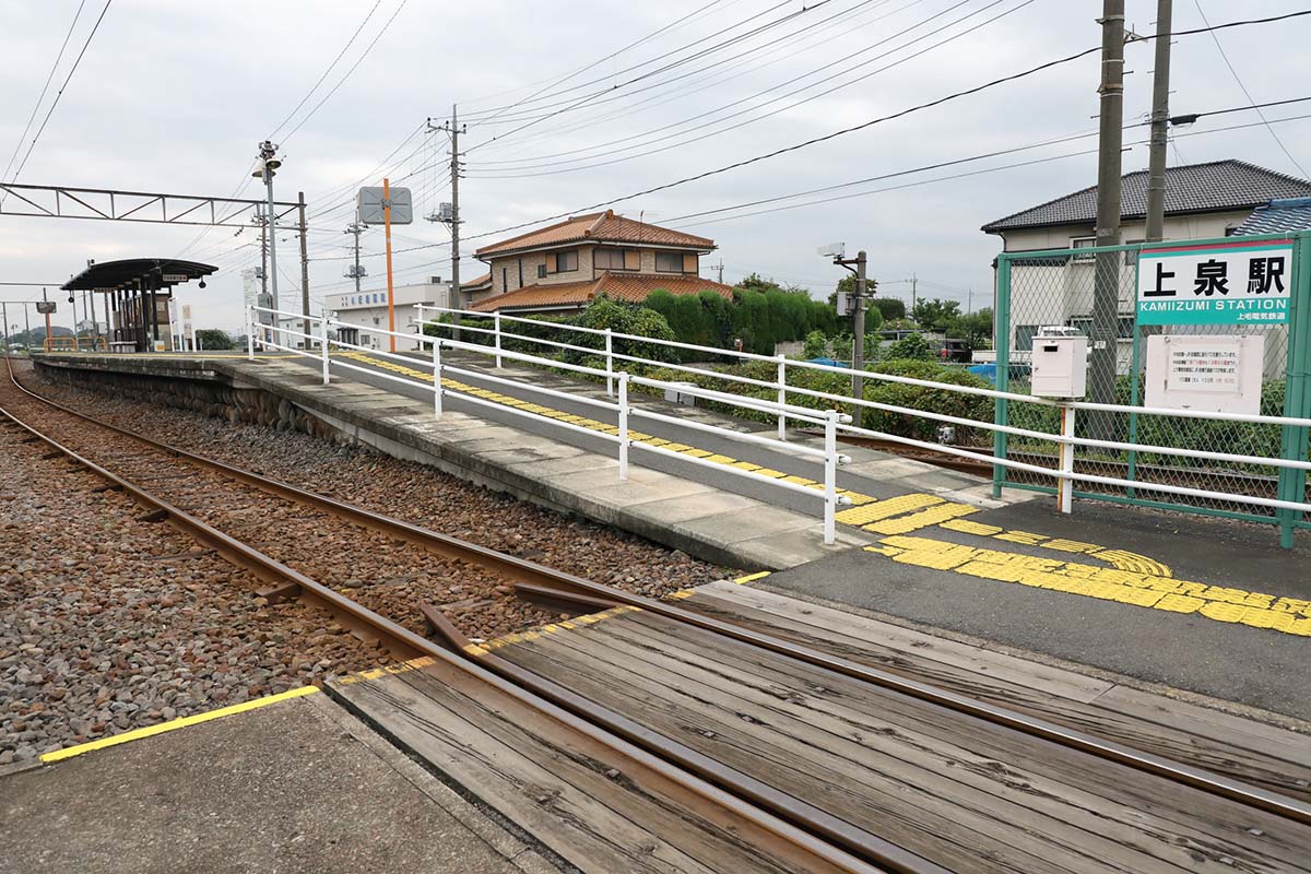 実は上毛電鉄の駅の23駅全部に、跨線橋がない。これは非常に珍しいことだ。ホームからはじかにスロープが延び、地上に降り立つことができる。もちろん遮断機付きの構内踏切は一部の駅にあるものの、気軽に自転車で駅まで走ってきて、自転車を押してホームまで入るのに、ほとんど手間入らず。