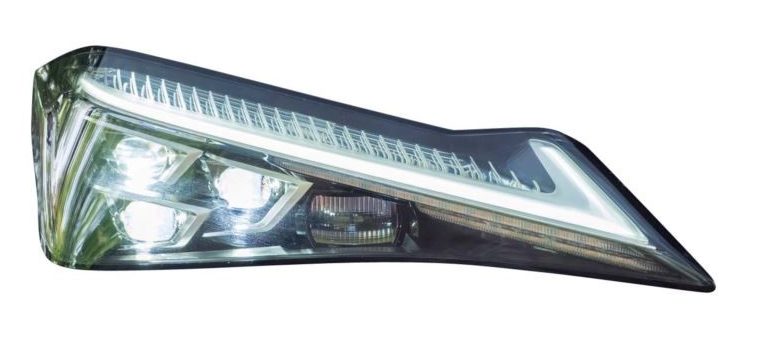 ランプケース内部にLED式のヘッドランプを小さいながらも3つ詰め込んだことで、ニラミをきかせた表情になっています。また、その上部にはまるで眉毛のようにクリアランスランプが配置されており、眼力をさらに強大なものにしています。