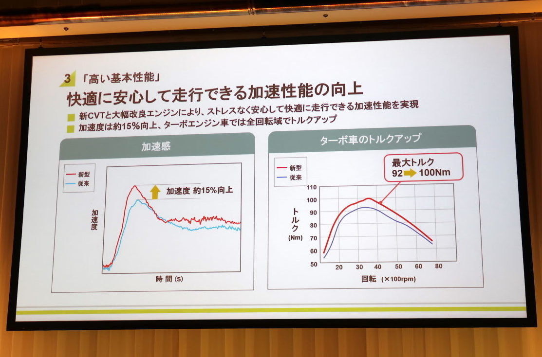 エンジンは従来と同じ「KF」型の直列3気筒DOHC 0.66Lの自然吸気とターボをラインナップしますが、新たに日本初となる複数回点火(マルチスパーク)を採用し、基本特性を磨き上げ、燃焼効率を向上。自然吸気エンジン搭載車では軽自動車ではじめて「平成30年基準排出ガス75%低減レベル」を達成し、さらに軽自動車ユーザーが多用する低速域でのトルク特性を強化しています。