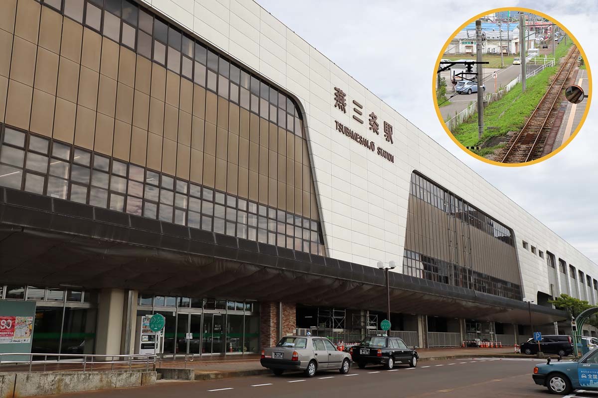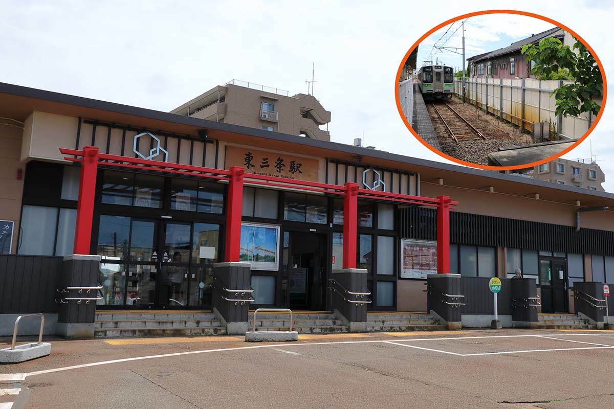 国道116号の高架をくぐり左カーブ、越後線との接続駅、吉田駅へ到着した。