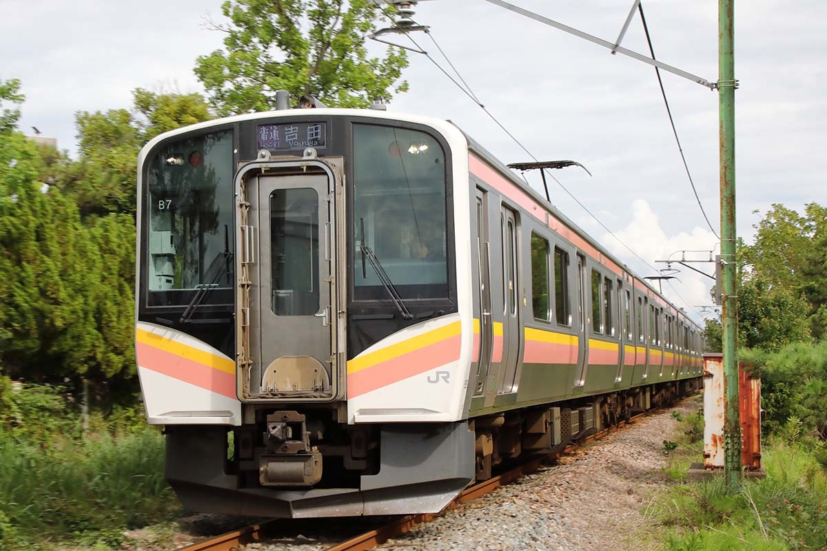 矢作駅を発車した列車は左右に緩やかにカーブしつつ、今回のゴールとなる弥彦駅を目指す。正面にそびえる弥彦山が次第に、間近に迫ってくる。