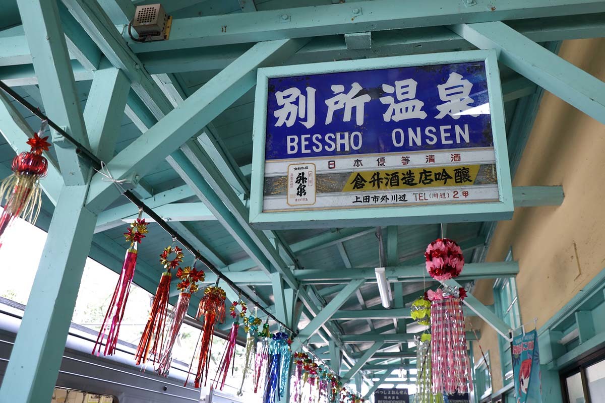 そして別所温泉駅へ電車が到着した。ここでうれしいお出迎えがある。和装の制服に袴を着た女性の観光駅長が乗客を出迎える。