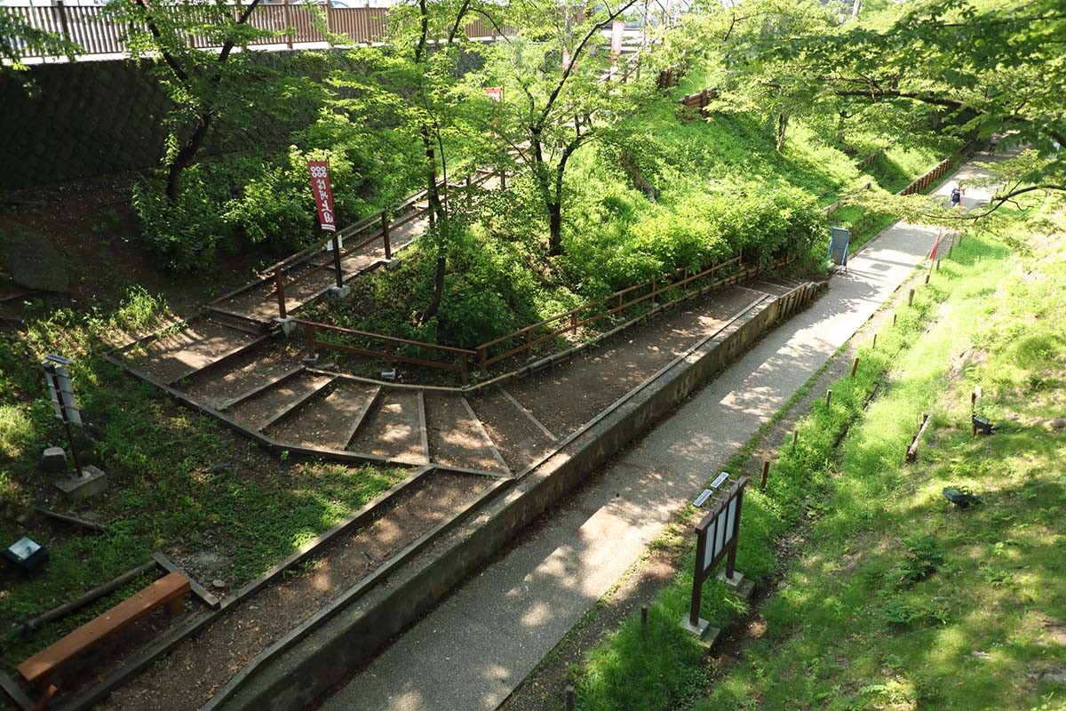 八木沢駅からの登り坂は40パーミル。1000mの間に40m上がるという急坂だ。かつて使われた旧型車両はこの坂でスピードが出せず、ゆっくりゆっくりと登っていったそうだ。