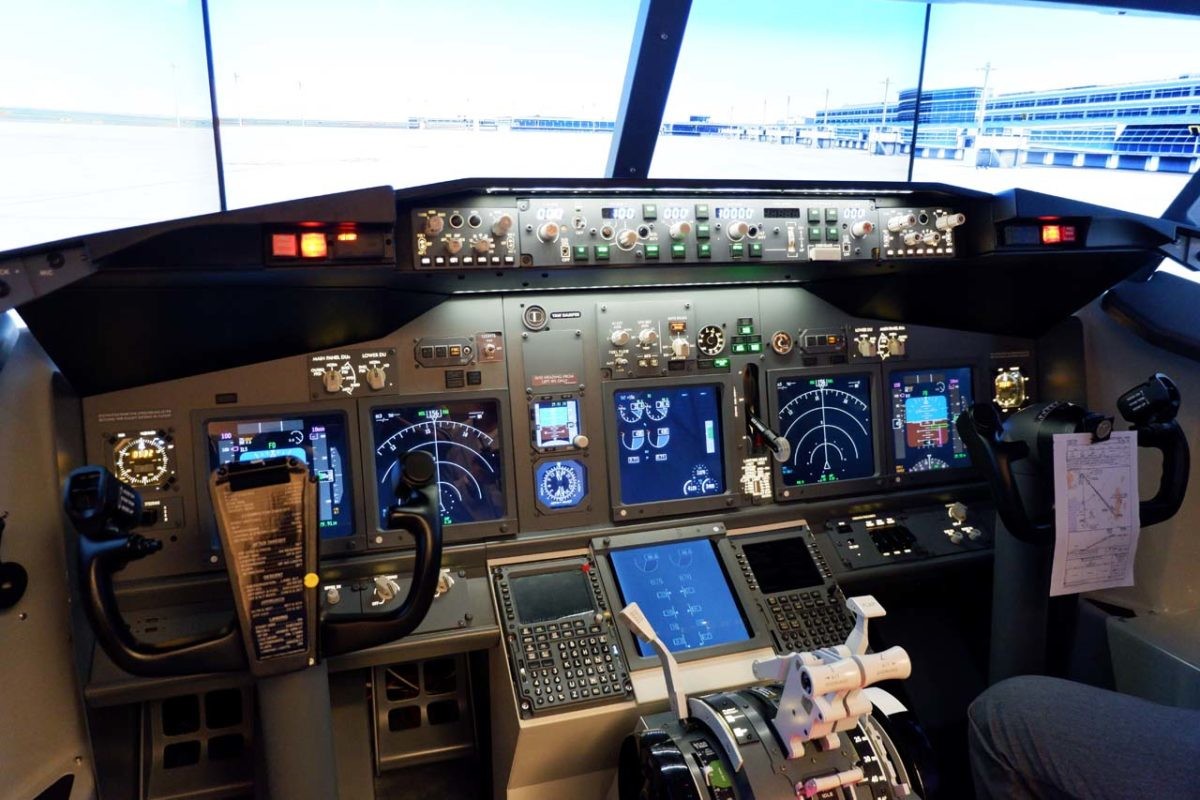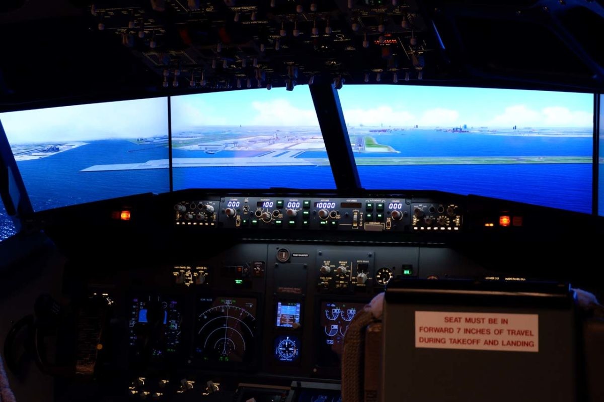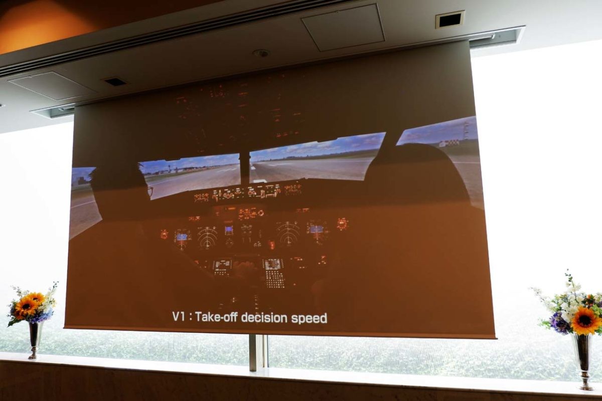 客室に入ると、そこは今までのホテルにはない特別な空間が広がっていました。シミュレーターはPCで遊ぶゲームとは異なり、パイロットがトレーニングに使用するホンモノの機材。それだけにその大きさは巨大で、客室では異様な存在感を放っています。試しに右側の副操縦士側に座らせていただきましたが、操縦桿やスイッチなど手に触れるあらゆるものがホンモノを伝えてきます。これを操作しながら90分間にわたって元機長やインストラクターの指導の下、羽田空港~伊丹空港を疑似フライトできるのです。一度でもパイロットに憧れた人ならまさに夢のような空間となるでしょう。
