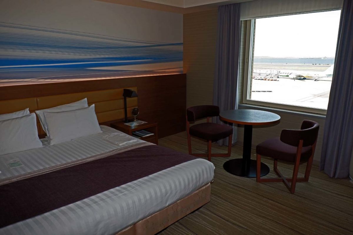 この他、羽田エクセルホテル東急では、羽田空港のC滑走路(空港東側で南北方向に延びる滑走路)に面する「滑走路ビュー」の部屋も用意しています。ここではC滑走路を離着陸する飛行機を間近に見ることができ、「デラックスダブル」なら窓際に用意してあるイスとテーブルを使い、くつろぎながら滑走路を眺めることができるのです。