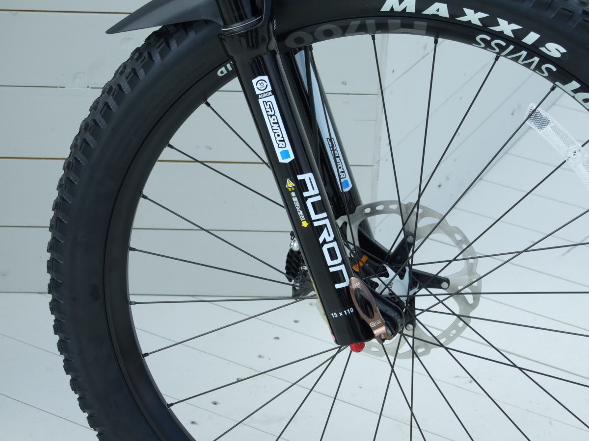 ホイールサイズは最近の主流となる27.5インチとなり、組み合わせるタイヤはMAXXIS社製のRecon+。ワイドな27.5×2.8HEは大容量のエアの恩恵により、悪路での快適性とグリップ力を合わせ持つ。