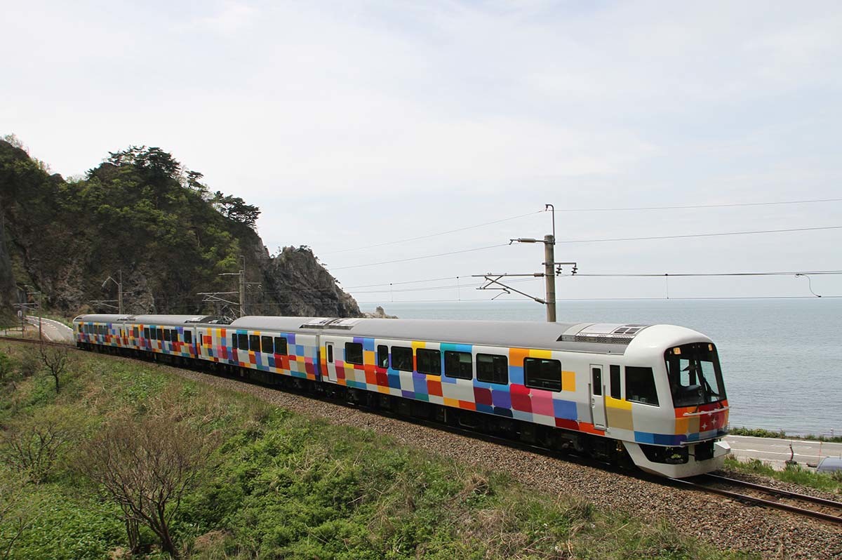 485系を改造したジョイフルトレインも、少しずつ消えつつある。上記のきらきらうえつは、2019年9月末で運転が終了されることになっている。10月5日からはHB-E300系「海里(かいり)」が代わりに走り始める。