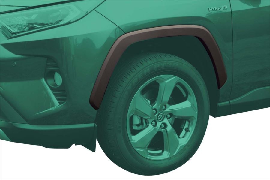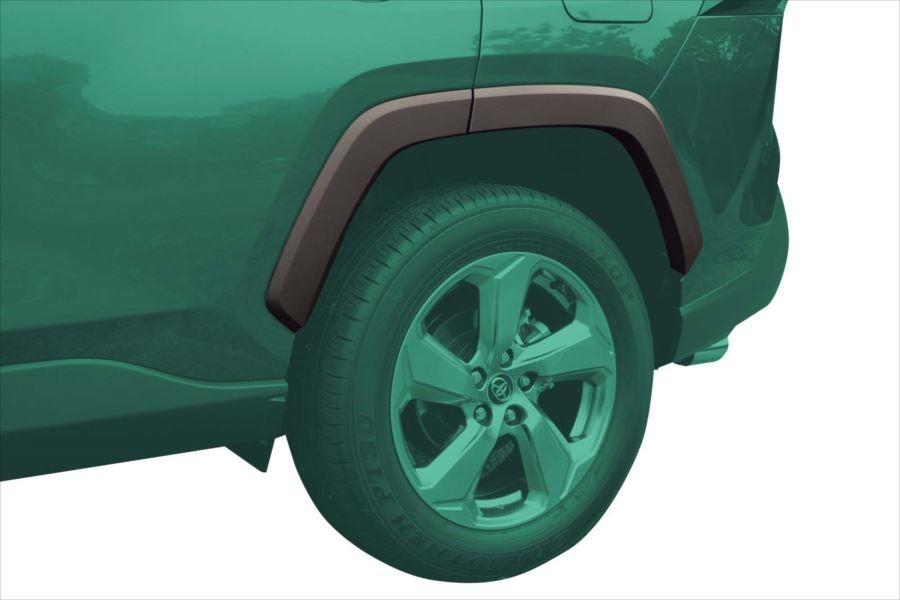 タイヤの周囲をカバーする形で装着される黒いモールパーツは、SUVならではの装備です。ただし、新型RAV4ではその形状もタイヤに合わせて丸いアーチを描いたものではなく、カクカクした形状になっていて、骨太な雰囲気を感じさせます。