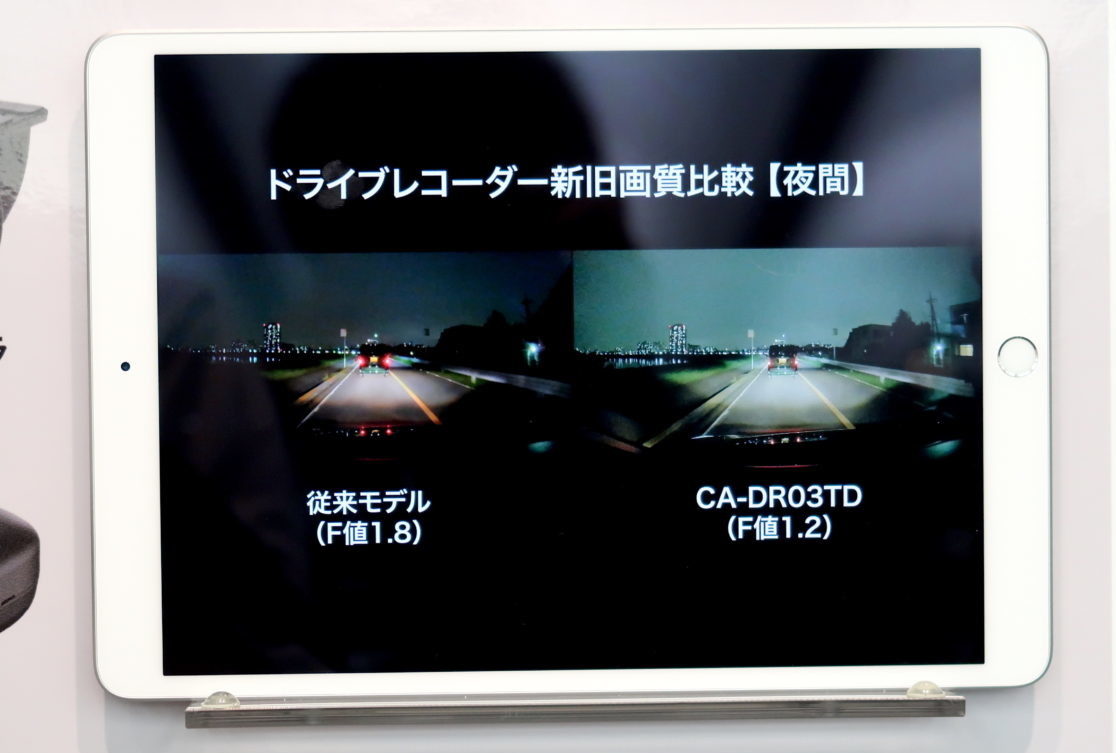 ストラーダに組み合わせ可能な前後2カメラドライブレコーダー「CA-DR03TD」を別売で用意。カーナビと連携することで、カーナビの大画面でドラレコの映像をいつでも確認することが可能。後方を映し出せば、あおり運転の不安にも対応できます。同時に前方だけを映す1カメラタイプの「CA-DR03D」も登場。どちらも小型カメラ採用で運転視界を邪魔しません。あおり運転を抑止する「ドライブレコーダーステッカー」も同梱されています。11月上旬の発売です。