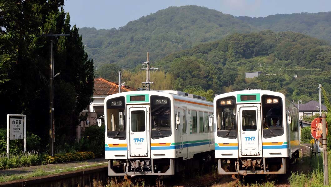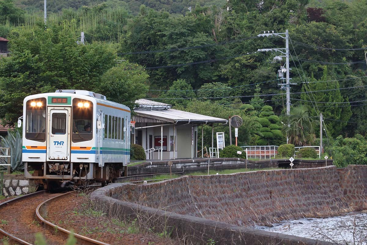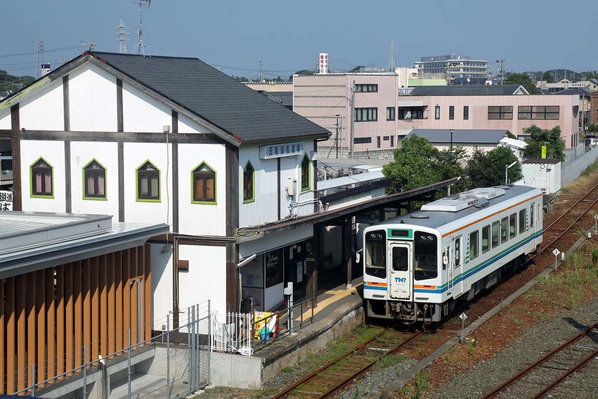 天浜線は全線が単線、非電化。途中駅で上り列車と行き違いをしつつ走る。