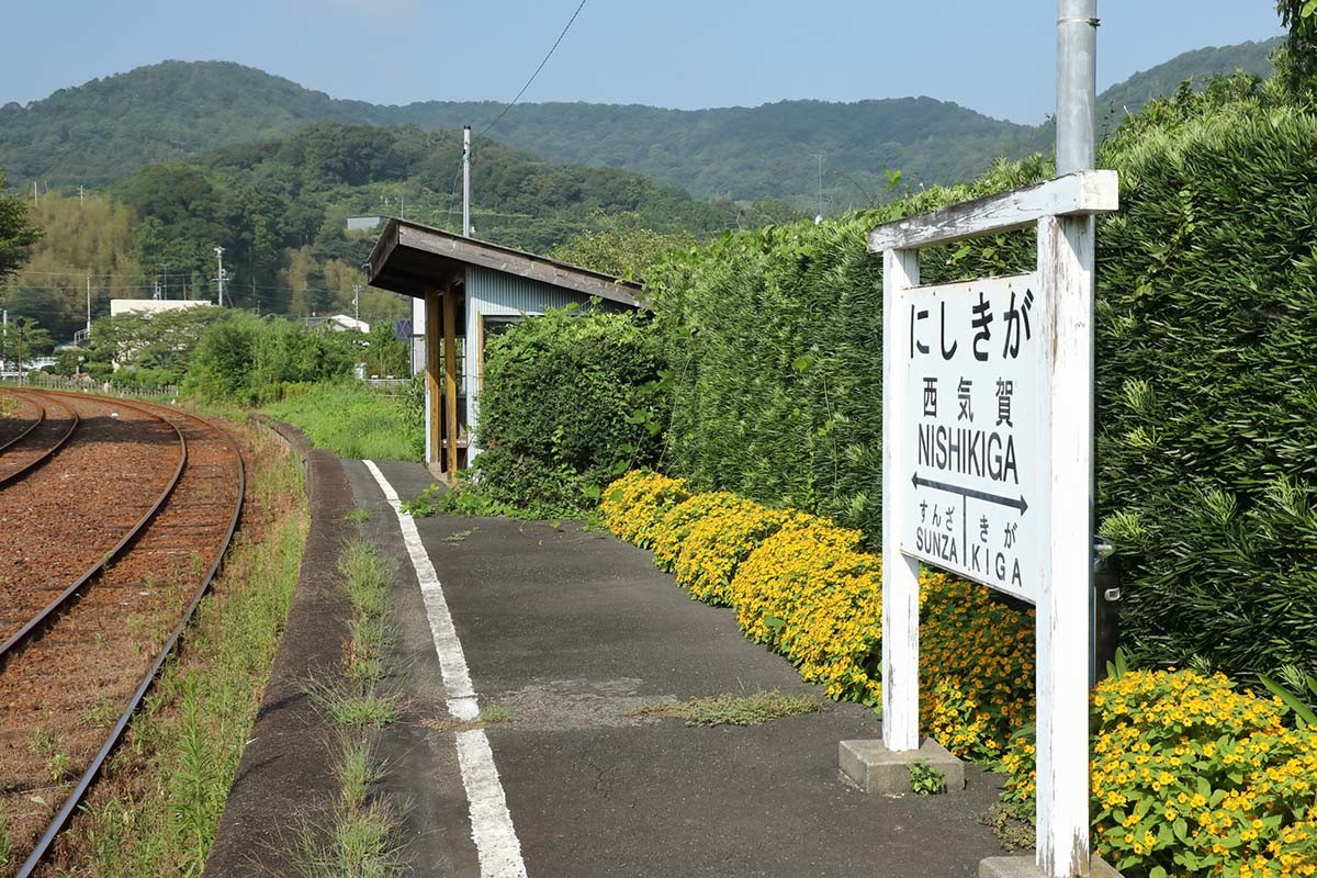 遠州二俣駅から走ること約30分。気賀駅に到着する。気賀は浜名湖北部、旧細江町の玄関口にもあたる。乗り降りが多い駅で、列車はここで満席となった。この気賀駅近くには気賀関所がある。東海道の本道として使われた本坂通(姫街道)に設けられた関所で、気賀は浜名湖北部の交通の要衝であったことが分かる。