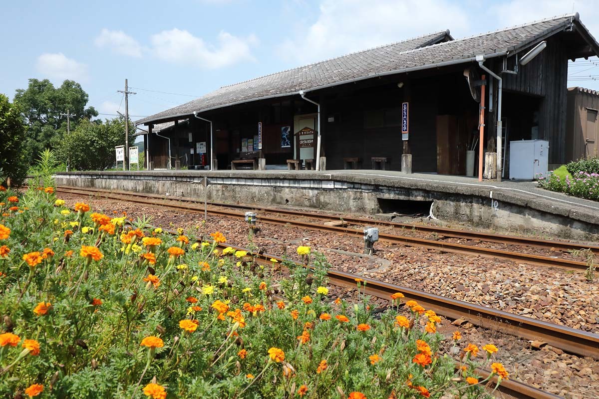 終点の一つ手前の駅はアスモ前駅だ。どのような意味がある駅名なのだろうと、思ったら、駅前にある自動車部品工場のメーカー名がそのまま駅名になったとのこと。現在はデンソー湖西製作所と名称が変わったので、駅名を変更したいところだが、コスト面の問題から、当分の間、駅名は元のままとなっている。