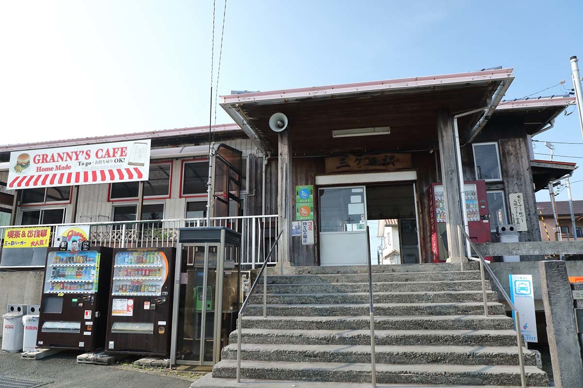 アスモ前駅を発車して、間もなく民家が沿線に見えてくると、間もなく終点の新所原駅に到着した。浜名湖に近い土地とあってか、駅舎内にウナギ店がある。改札を通るとウナギを焼く香りが鼻をくすぐる。