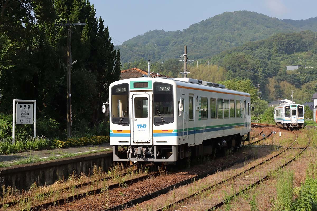 しばらく空席が目立った。宮口駅を過ぎたあたりから沿線の緑が急に濃くなっていく。緑のトンネルをくぐって走る区間が連なり、車窓から望む風景がより爽やかさを増していく。