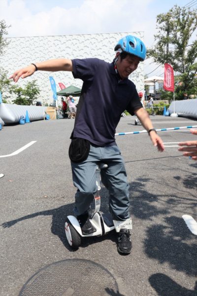 試乗会は週末の2日間行われたのですが、朝から家族連れや若いカップルがひっきりなしに訪れ、思い思いに次世代モビリティを楽しんでいました。会場では購入ができる仕組みも用意しており、実際に数台売れたそうです。