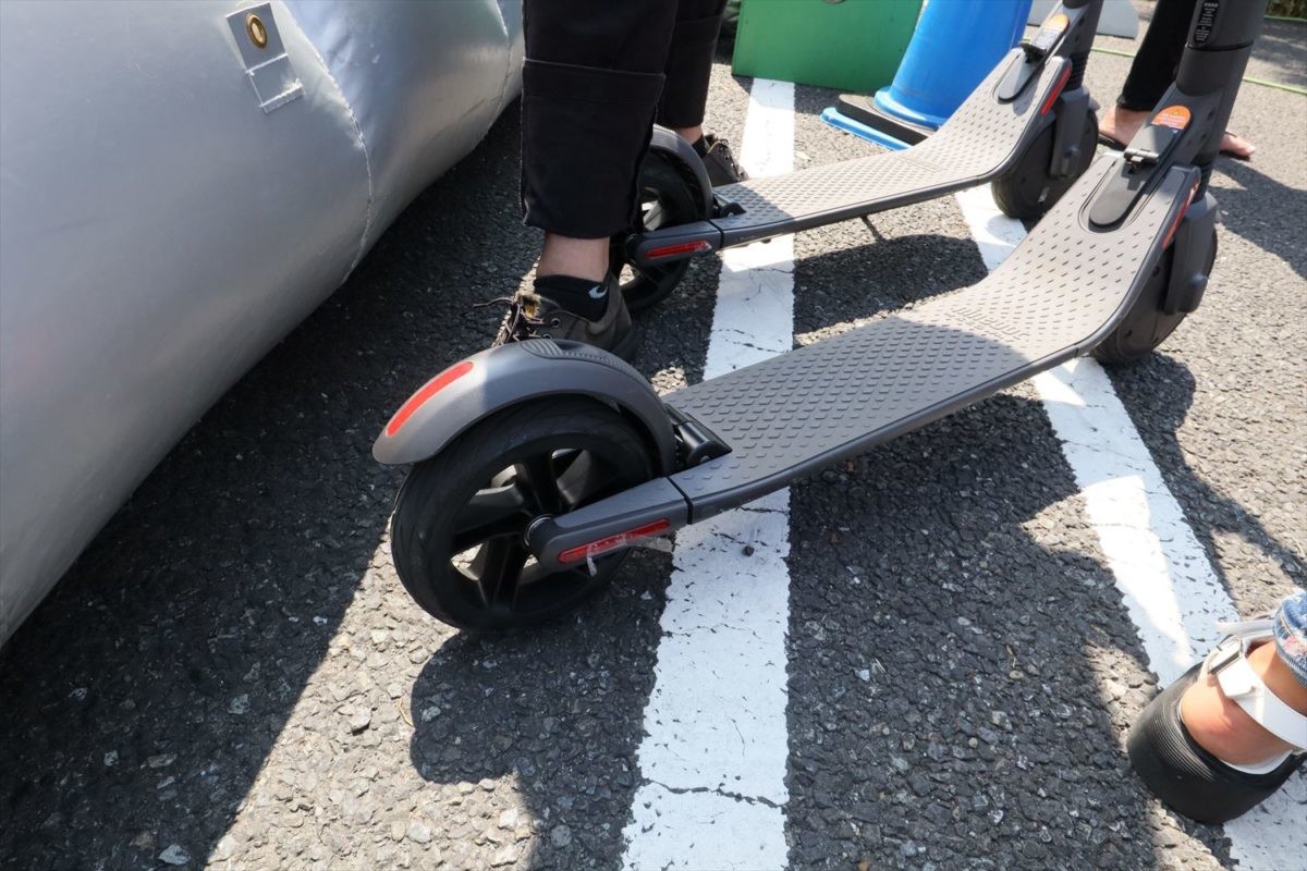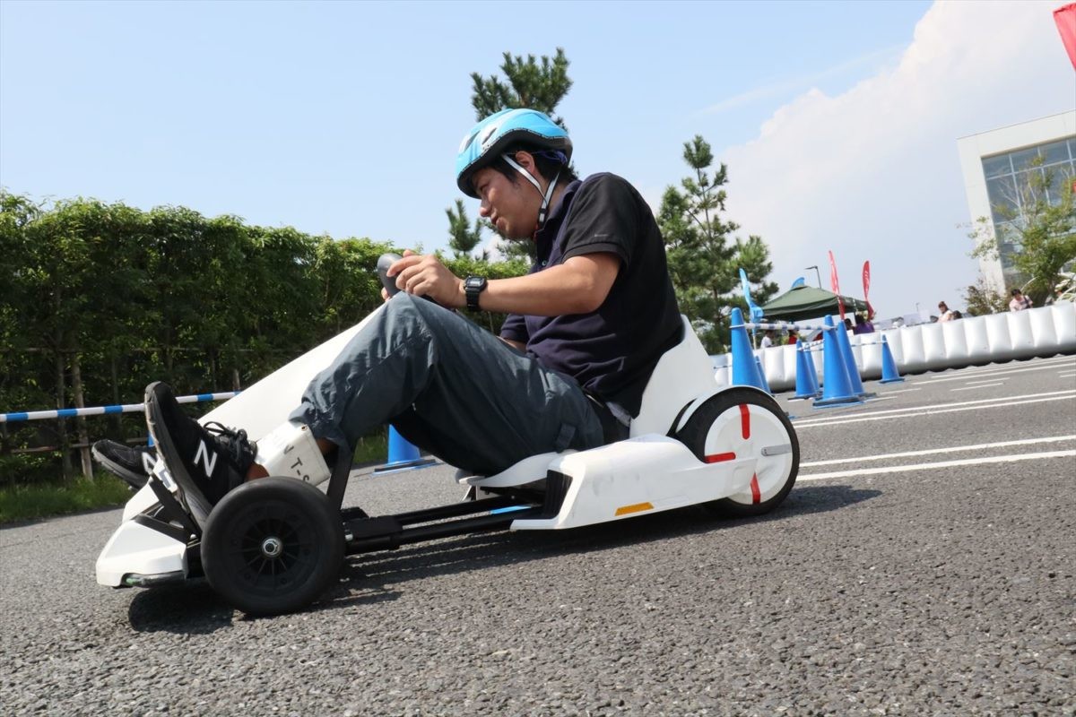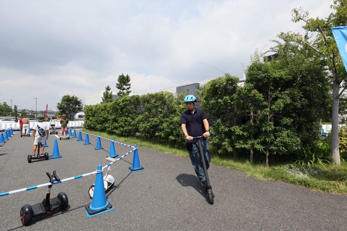 1回あたりの体験時間は15分ほど。たくさんの人が並んでいたので、われわれも時間通りに体験を終えてKickScooterの体験へと移ることにしました。S-PROに比べるとKickScooterはとても簡単です。よくある足漕ぎタイプのキックスケーターに電気駆動システムを搭載したものなので、誰でもすぐに乗り回せるようになります。