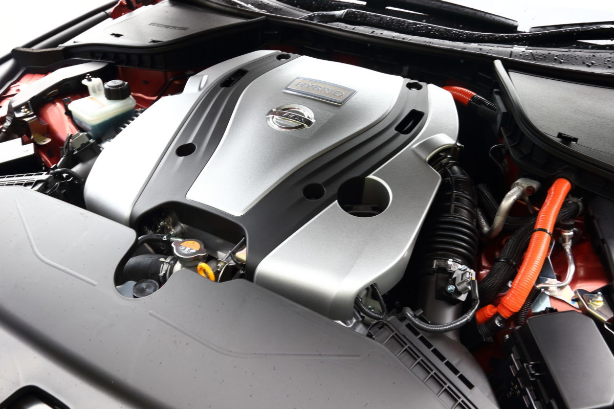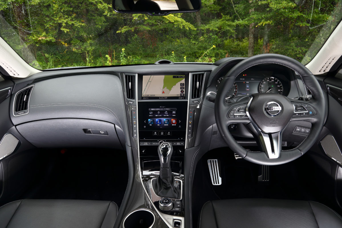 新型では、走りに関わる部分も着実に進化しています。前述の通り、ガソリン仕様のエンジンは晴れて日産オリジナルの3L V6ツインターボにスイッチ。このユニットは標準的な304PS仕様に加え、新グレードの「400R」用ではスカイライン史上最強となる405PSを発揮します。また、シャシー回りではスカイラインへの搭載が世界初となった完全バイワイヤーステアリングのDAS(ダイレクトアダプティブステアリング)が熟成されたほか、ガソリンの上級グレードでは電子制御ダンパーのインテリジェントダイナミックサスペンションも新採用されています。