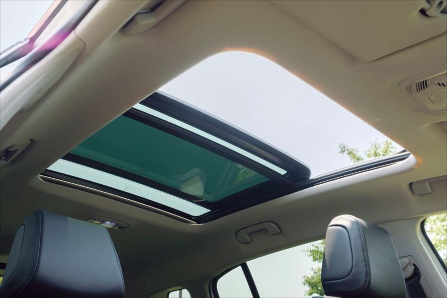 撮影車は「ナッパレザーパッケージ」というパッケージオプションが付いており、とても面積の大きなサンルーフもセットになっていました。車内側にはメッシュの電動サンシェードを備えているので、眩しさも抑えられます。