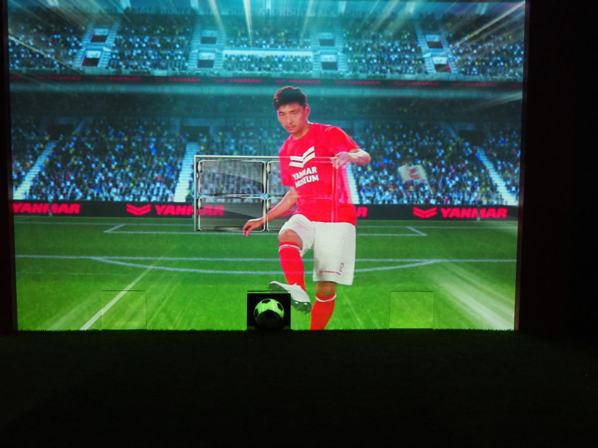 ヤンマーがセレッソ大阪のスポンサーをしていることから誕生したアトラクション「フットボールチャレンジ」。滋賀県出身であり、元セレッソ大阪の乾貴士選手からパスを受け、シュート体験ができます。