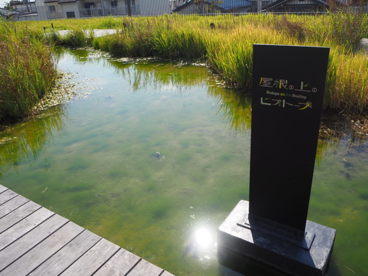 チャレンジ続きでちょっと疲れたら、2階の「ヤンマーテラス」へ。生態系がわかる「屋根の上のビオトープ」でひとやすみできます。